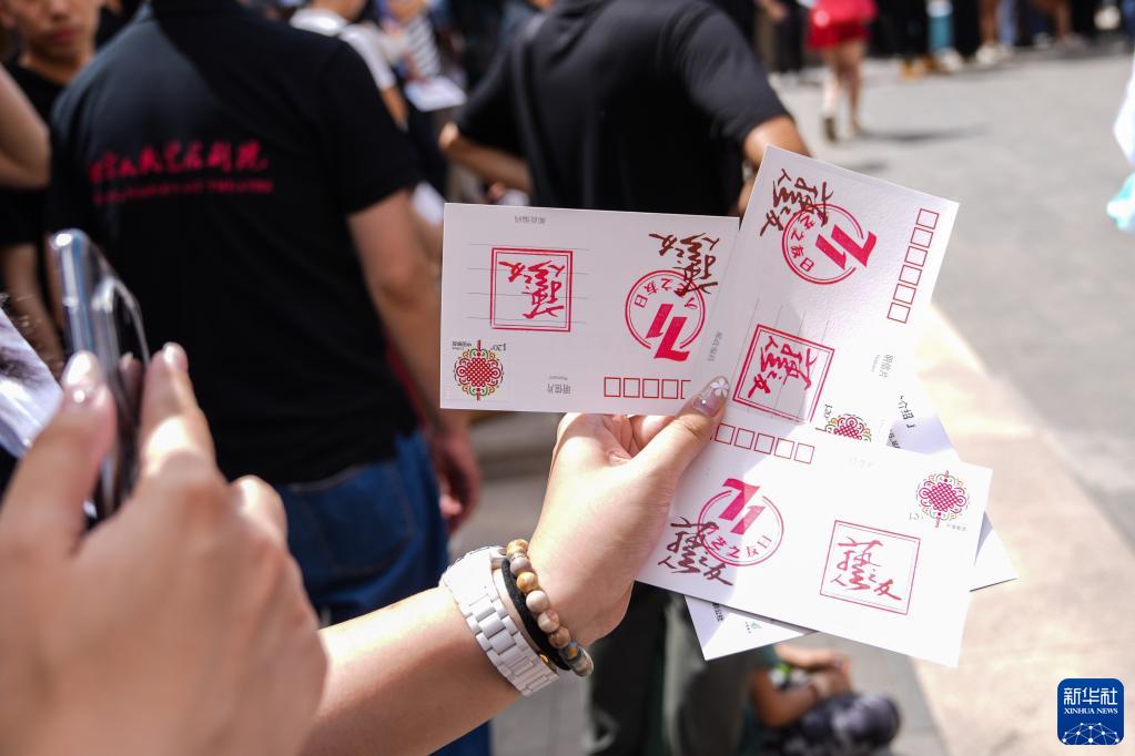 6月11日,觀(guān)眾在展示自己的集章打卡。