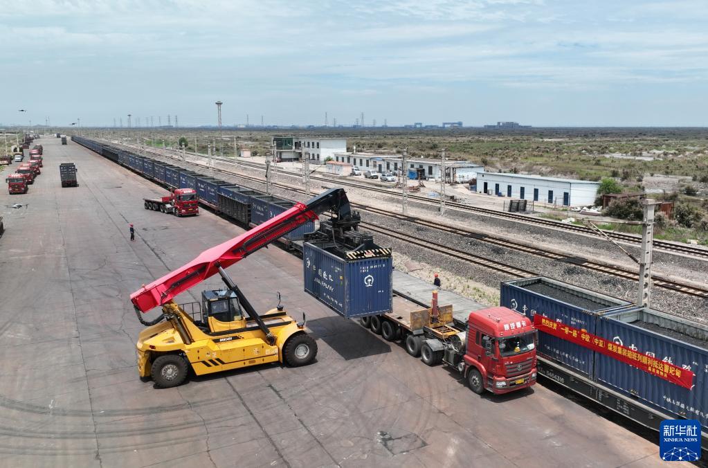新華全媒+丨河北曹妃甸港區迎來(lái)首列烏蘭巴托發(fā)出的中歐(中亞)班列