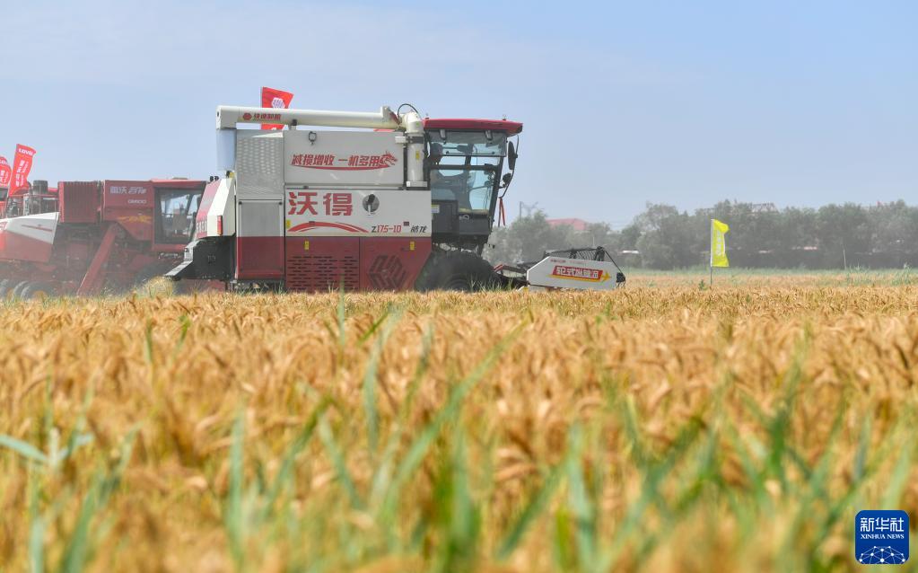 當日,天津市2023年“三夏”機械化生產(chǎn)現場(chǎng)推動(dòng)會(huì )在天津市靜海區蔡公莊鎮舉行,30余臺(套)農機設備現場(chǎng)展開(kāi)小麥機收、玉米播種、田間植保等機械化作業(yè),20余臺(套)智能、高效農機具進(jìn)行了現場(chǎng)展示,標志著(zhù)天津市“三夏”生產(chǎn)拉開(kāi)大幕,大面積機收作業(yè)正式啟動(dòng)。