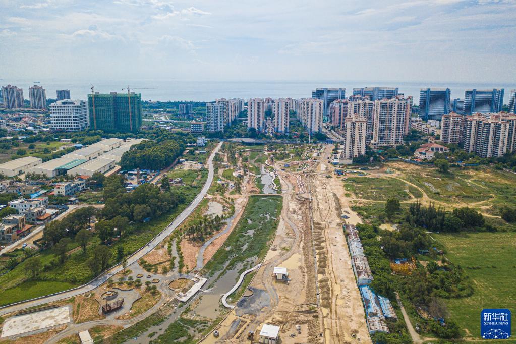 6月10日在海南省東方市拍攝的建設中的竹金溝(竹金溝公園段)(無(wú)人機照片)。