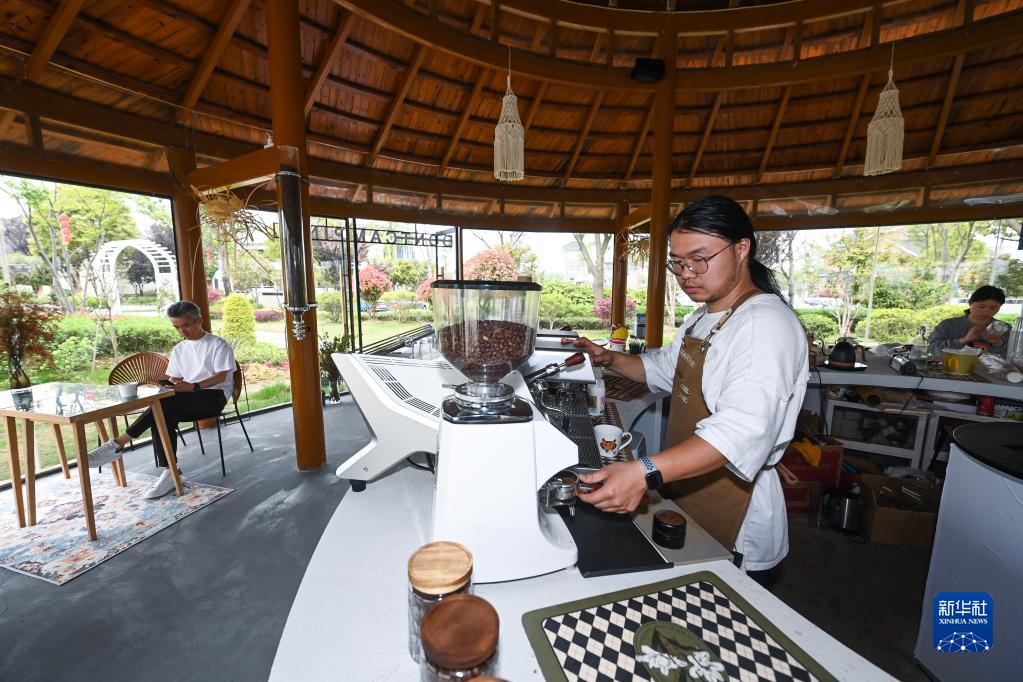 工作人員在浙江湖州織里鎮伍浦村漁耕文化園的陶灣里鄉村咖啡店工作(4月11日攝)。近年來(lái),織里鎮依托當地美麗鄉村建設以及自然風(fēng)光,招引鄉賢返鄉創(chuàng )業(yè),依托閑置民宅、閑置土地建設特色咖啡店、花海景觀(guān)、特色民宿和農家樂(lè )等,發(fā)展鄉村旅游經(jīng)濟。