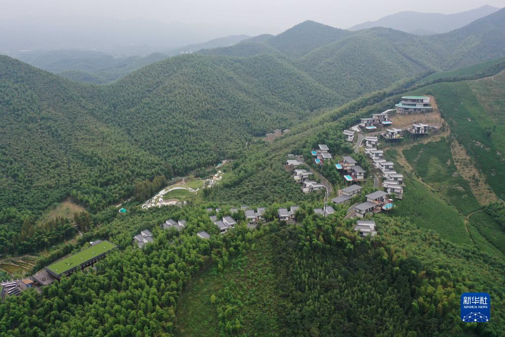 位于浙江湖州吳興區妙西鎮的“慧心谷”度假酒店(無(wú)人機照片,2020年10月3日攝)。附近妙山村的不少村民在這家山谷中的酒店就業(yè)。