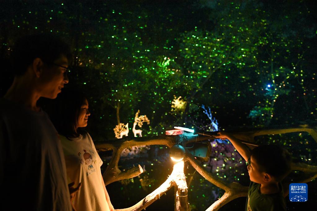 在浙江紹興新昌縣鏡嶺鎮,游客在體驗山區夜游項目(5月4日攝)。