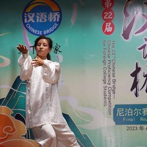 第22屆“漢語(yǔ)橋”世界大學(xué)生中文比賽尼泊爾賽區決賽11日在勒利德布爾市舉行。10名參賽選手以自身經(jīng)歷闡釋對“天下一家”這一演講主題的看法,并展示了中文歌曲演唱、少林武術(shù)等才藝。