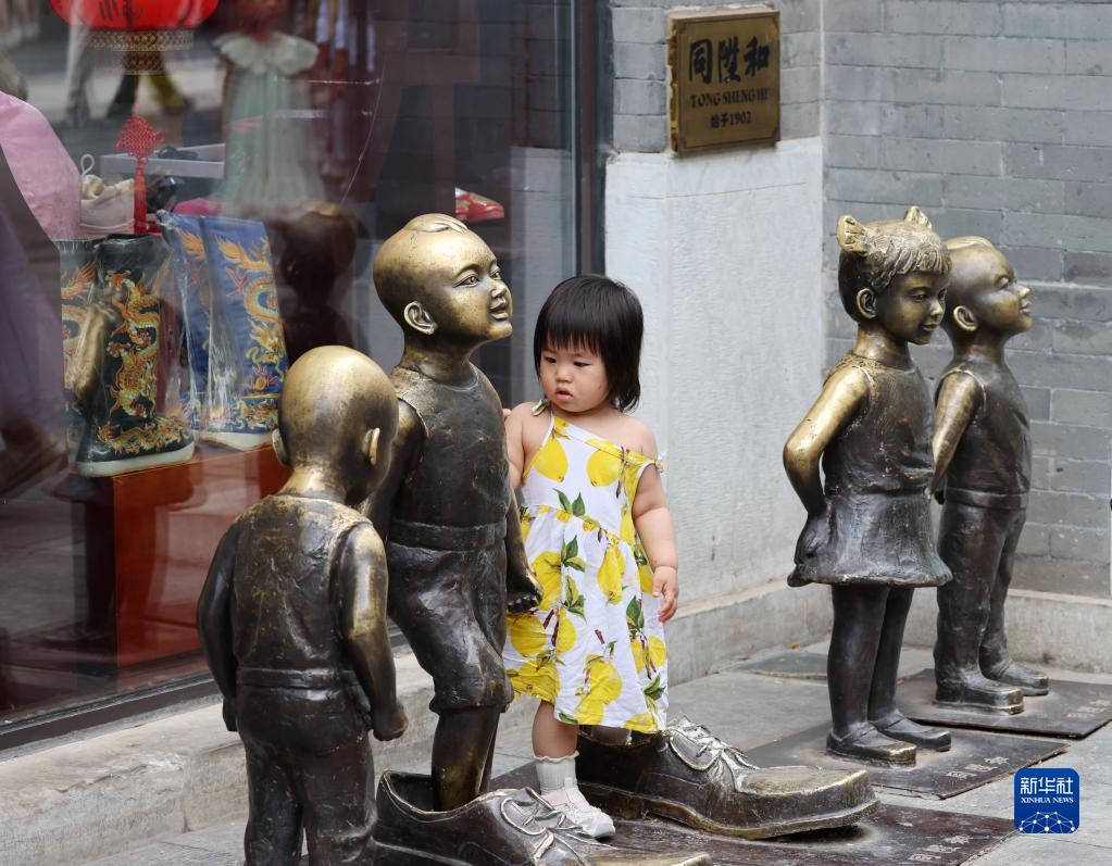 6月11日,小朋友在北京前門(mén)大街游玩。新華社記者 張晨霖 攝
