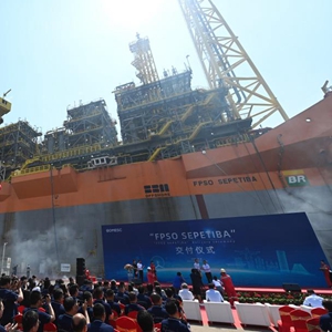 當日,海上浮式生產(chǎn)儲卸油船(FPSO)“SEPETIBA”輪在天津完成交付并將于近日離港啟運巴西。