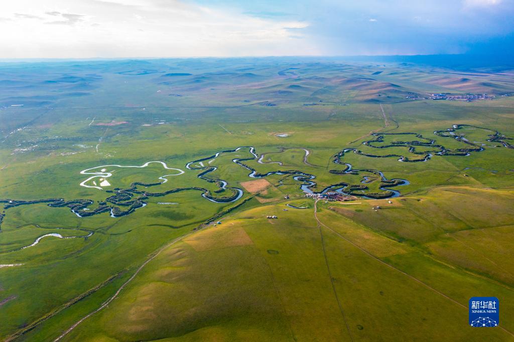初夏時(shí)節,位于內蒙古自治區錫林郭勒盟東北部的烏拉蓋草原風(fēng)景宜人,蔚藍色的天幕下,綠色的草原廣闊無(wú)垠,蜿蜒流淌的烏拉蓋河綿延向遠方,美如畫(huà)卷。