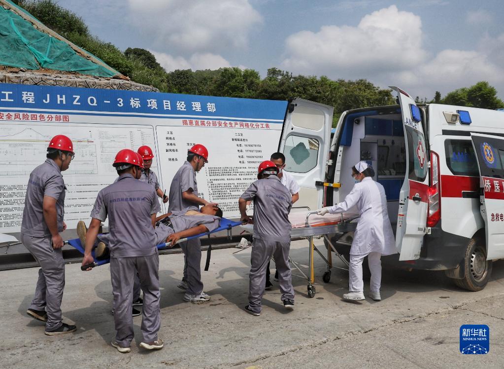 6月13日,中鐵四局應急救援隊演練將“受困人員”從隧道坍塌現場(chǎng)救援至安全區域并送醫搶救。