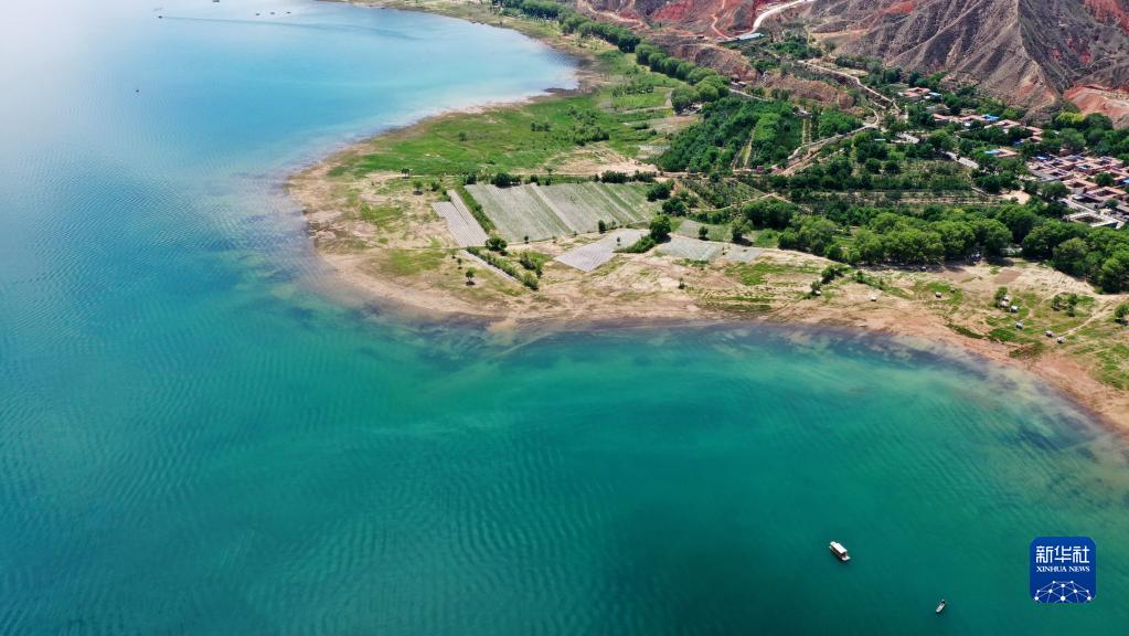 位于甘肅省臨夏回族自治州永靖縣境內劉家峽水庫的黃河三灣碧波蕩漾、岸線(xiàn)蜿蜒,片片小舟在水面搖曳,呈現一幅夏日清新畫(huà)卷。
