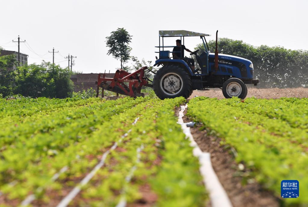近日,在位于關(guān)中平原的陜西省西安市鄠邑區,農戶(hù)在麥收后搶抓農時(shí)開(kāi)展夏種夏管,田間地頭一派忙碌景象。