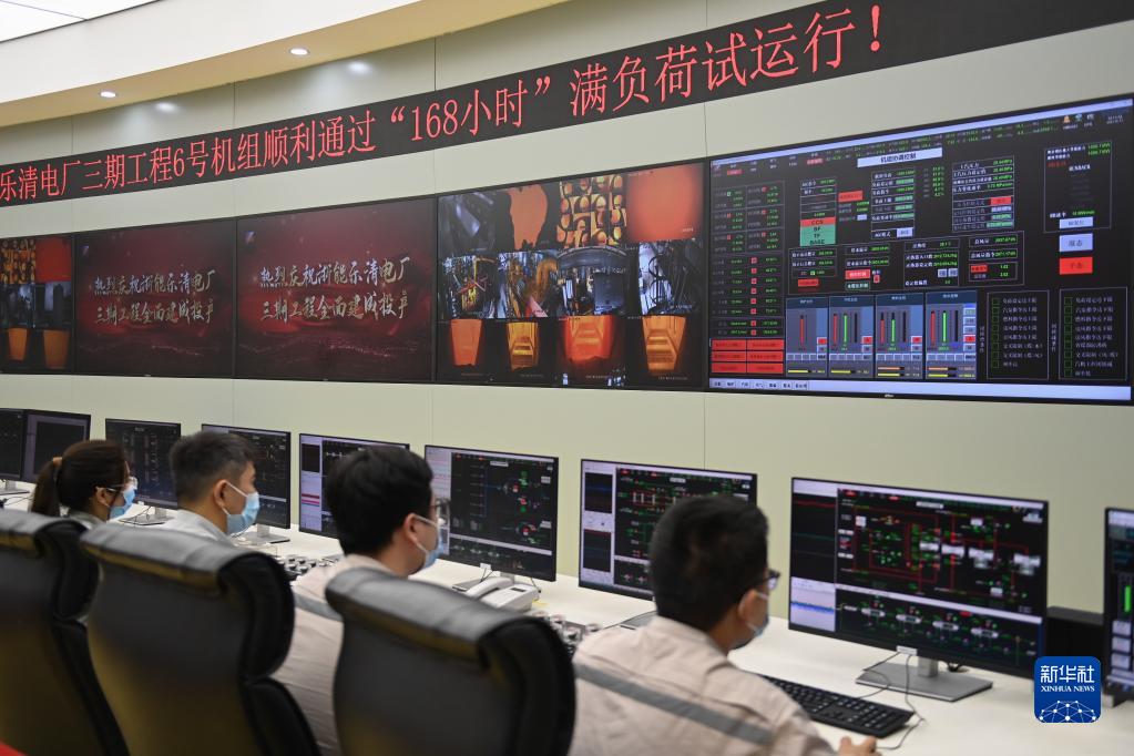 6月13日,工作人員在浙能樂(lè )清電廠(chǎng)三期工程集控室關(guān)注6號機組運行狀態(tài)。