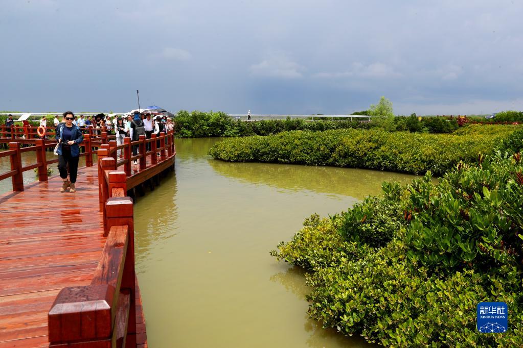 6月13日,人們在廣東省湛江市麻章區金牛島觀(guān)賞紅樹(shù)林。