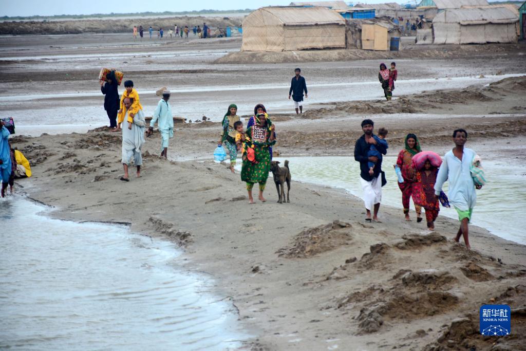 6月13日,受“比帕喬伊”颶風(fēng)迫近影響,民眾從巴基斯坦信德省特達地區撤離。