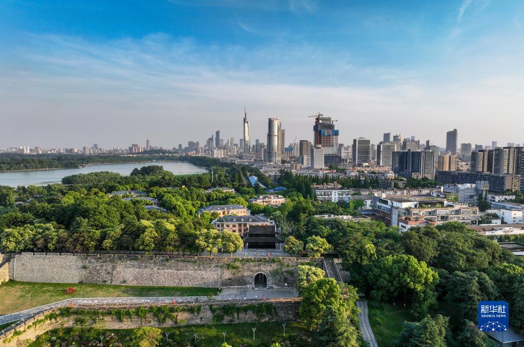 南京明城墻神策門(mén)、玄武湖與城市風(fēng)光(6月9日攝,無(wú)人機照片)。