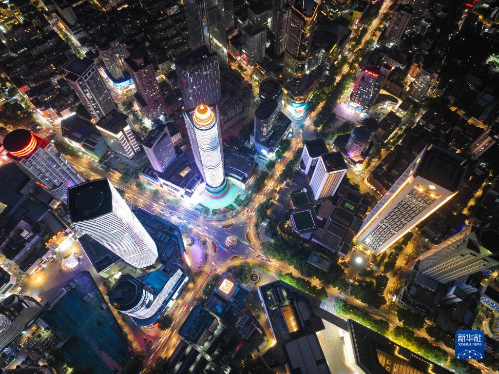 江蘇南京新街口夜景(6月12日攝,無(wú)人機照片)。
