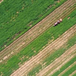 6月14日,在河北省滄州市吳橋縣安陵鎮,農民駕駛農機對馬鈴薯進(jìn)行殺秧(無(wú)人機照片)。