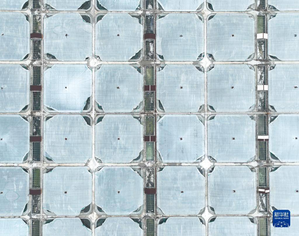 這是蛇蟠島上一家水產(chǎn)養殖企業(yè)排列整齊的蝦棚(6月14日攝,無(wú)人機照片)。小棚化養殖技術(shù)通過(guò)對水質(zhì)溫度的精準控制,大大提高了水產(chǎn)產(chǎn)量。