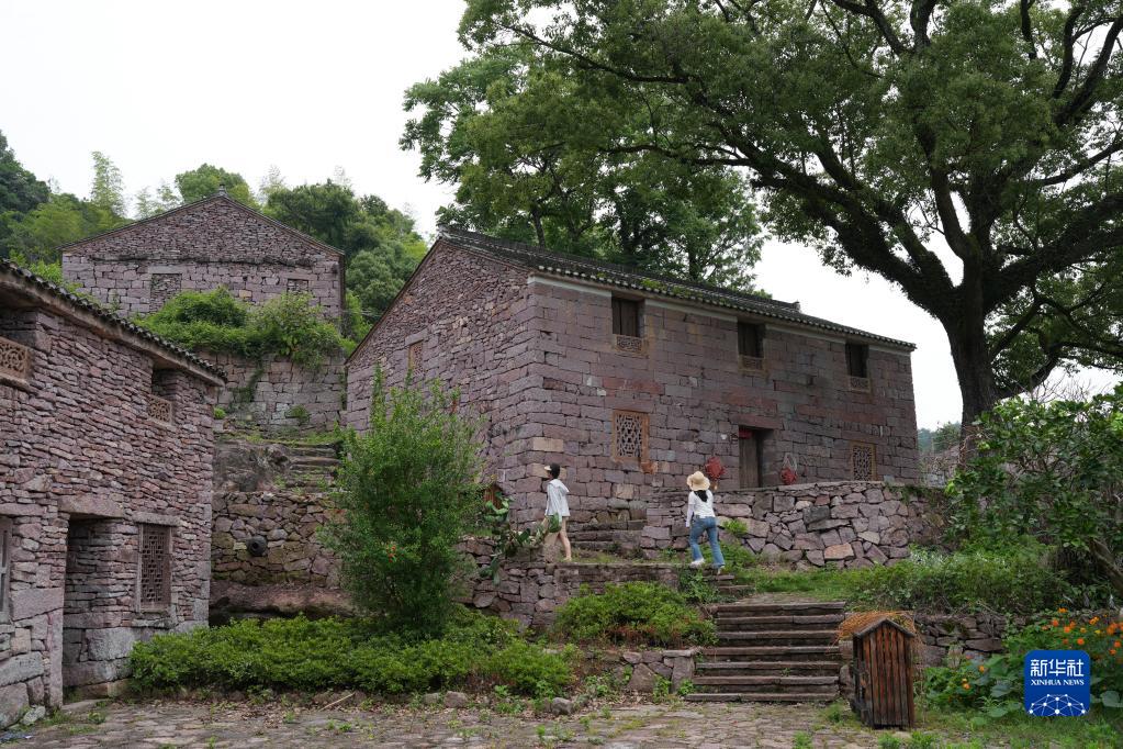 6月14日,游客在蛇蟠島黃泥洞古村觀(guān)光。