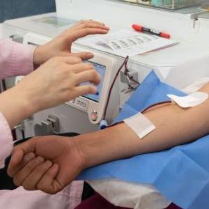 6月14日,在寧夏銀川市新華街愛(ài)心獻血車(chē)外,市民展示無(wú)償獻血證。