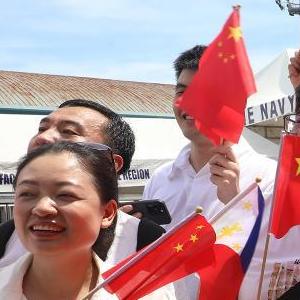 6月14日,在菲律賓馬尼拉港,人們在岸邊迎接戚繼光艦抵達。