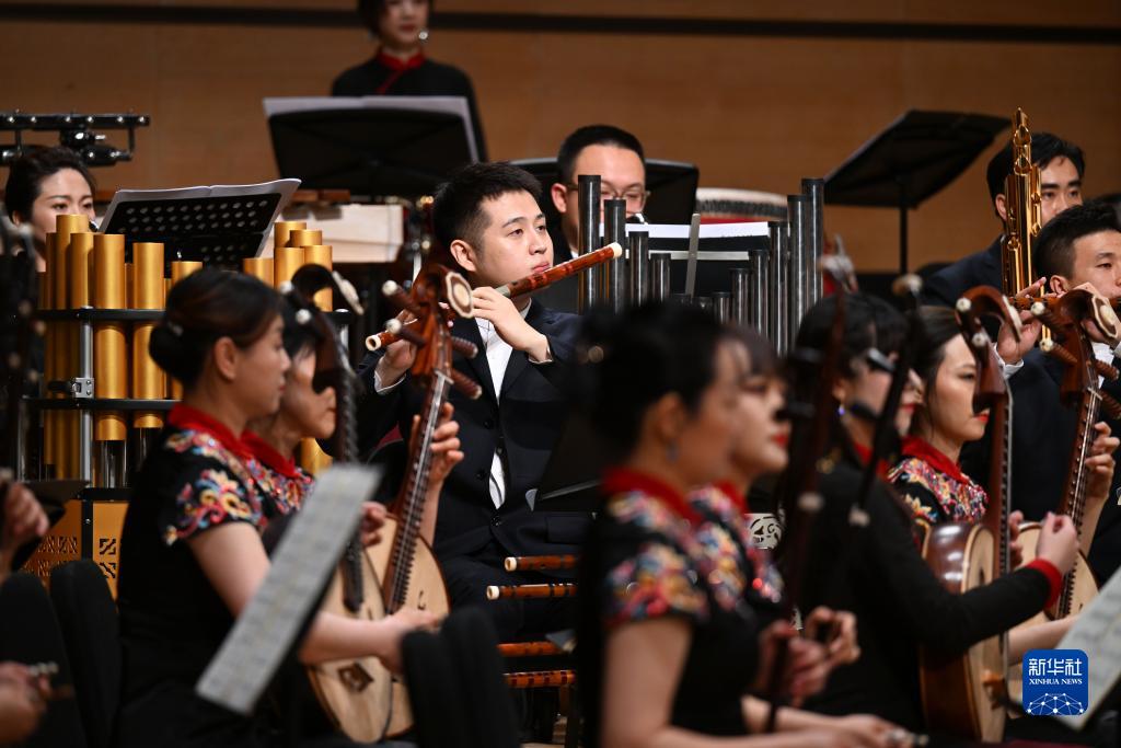 當日,作為首屆天津音樂(lè )節期間的重要演出之一,天津歌舞劇院民族樂(lè )團、北京民族樂(lè )團、河北民族樂(lè )團在天津大劇院音樂(lè )廳合作演繹民族交響詩(shī)《大運河》。新華社記者 趙子碩 攝