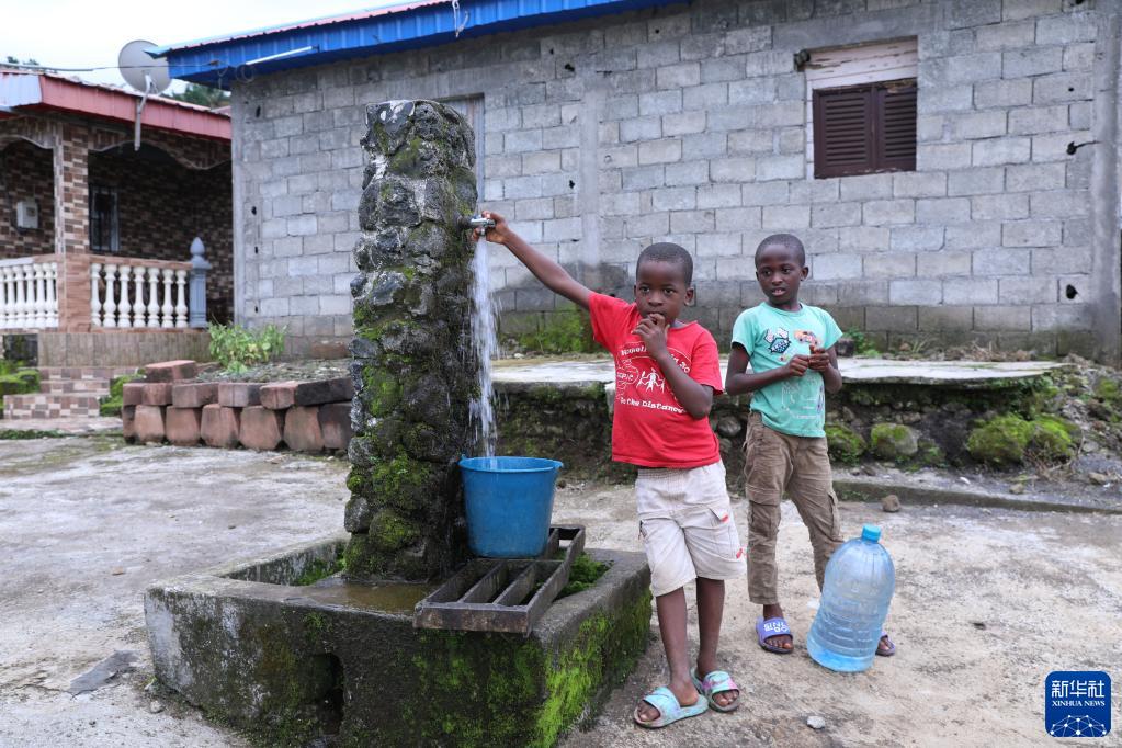 6月13日,在赤道幾內亞北比奧科省村鎮柏搜搜,孩子們在公共取水點(diǎn)取水。