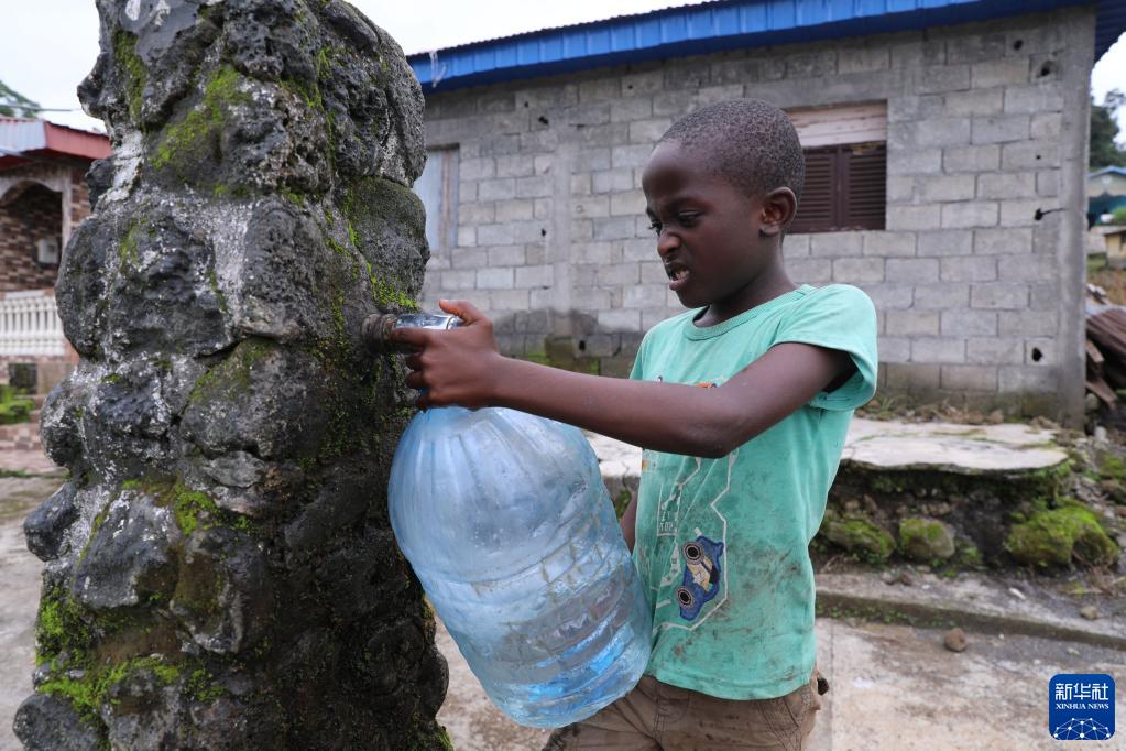 6月13日,在赤道幾內亞北比奧科省村鎮柏搜搜,一個(gè)孩子在公共取水點(diǎn)取水。