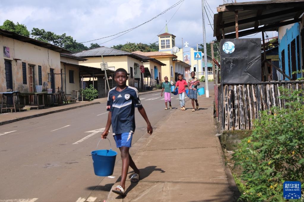 6月13日,在赤道幾內亞北比奧科省村鎮巴里奧貝,孩子們前往公共取水點(diǎn)取水。