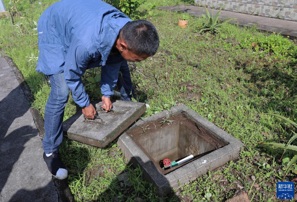 6月13日,在赤道幾內亞北比奧科省村鎮巴里奧貝,工作人員檢查給水管。
