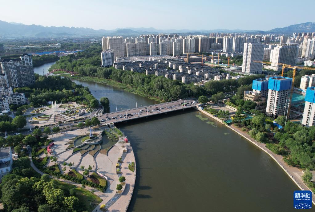 6月6日拍攝的秦皇島市海港區境內的湯河景色(無(wú)人機照片)。
