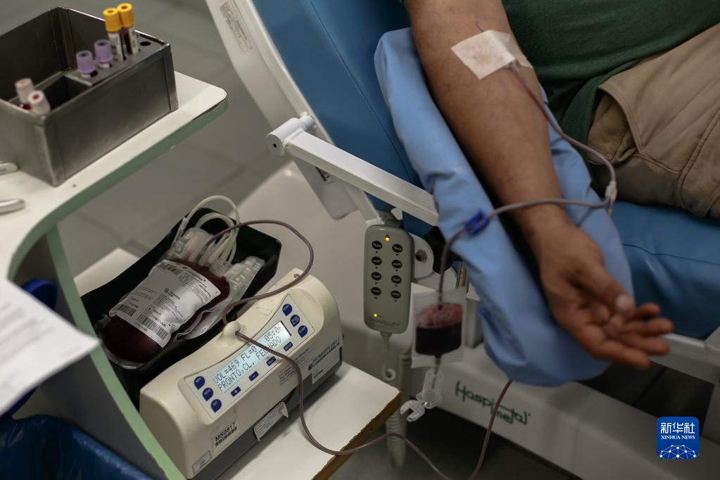 6月14日,志愿者在巴西里約熱內盧一處獻血中心獻血。