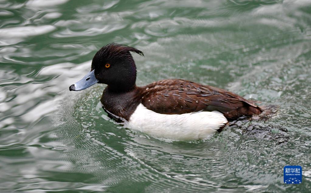 夏日里,白眼潛鴨和鳳頭潛鴨在西藏拉薩市拉魯濕地國家級自然保護區中干渠里覓食、嬉戲。