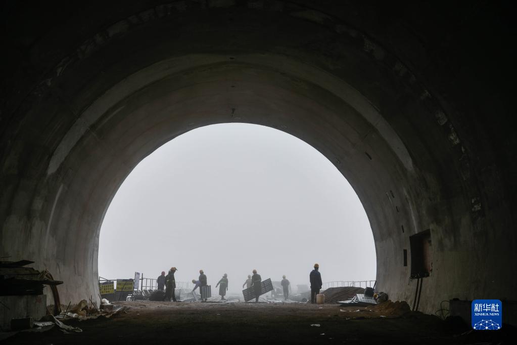6月15日,貴州橋梁集團工人在六安高速3標段華竹山隧道口施工。