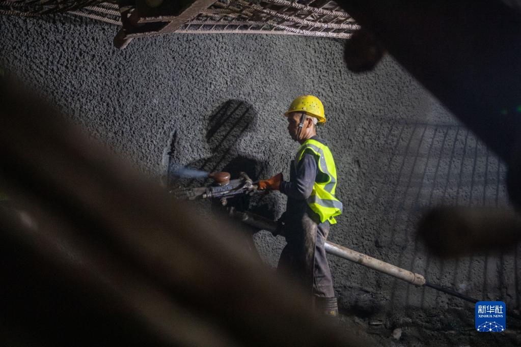 6月15日,工作人員在渝昆高鐵川渝段大山隧道貫通面施工作業(yè)。
