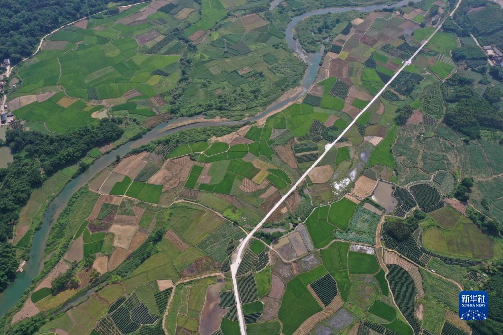 6月15日拍攝的鹿寨縣中渡鎮石墨村高標準農田(無(wú)人機照片)。
