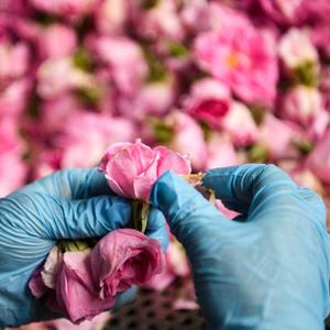 6月15日,在四川省阿壩州小金縣“金山玫瑰”基地,工人正在選花。