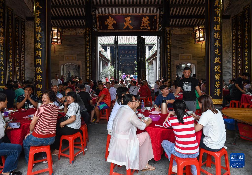6月15日,2023年車(chē)陂龍舟競渡第一名“范陽(yáng)簡(jiǎn)”龍船會(huì )在簡(jiǎn)氏家祠里擺下幾十桌龍船飯慶祝。