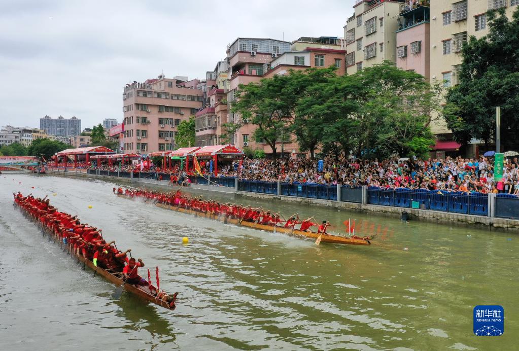 自農歷四月初八“起龍舟”開(kāi)始,廣州地區就開(kāi)啟了劃龍舟、迎端午的年度大戲。6月15日,車(chē)陂村12條龍船在車(chē)陂涌進(jìn)行龍舟競渡。