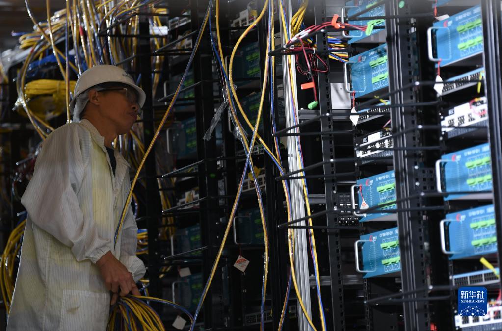 6月15日,工作人員在江門(mén)中微子實(shí)驗地下大廳內布線(xiàn)。