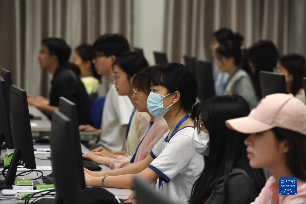 6月15日,閱卷教師在南京大學(xué)閱卷點(diǎn)評卷。