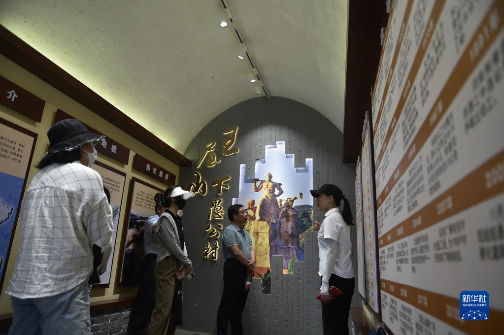 6月15日,游人在王屋山腳下的愚公村村史館里參觀(guān)。