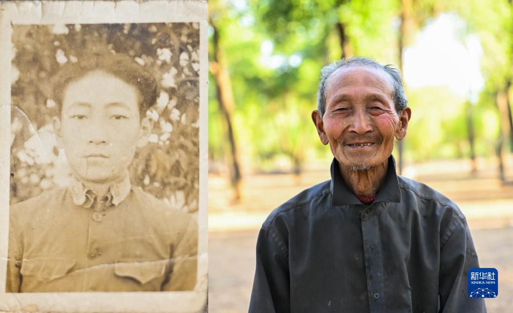 拼版照片,左圖為曹扎娃年輕時(shí)的照片(6月14日翻拍);右圖為曹扎娃現在的照片(6月14日攝)。