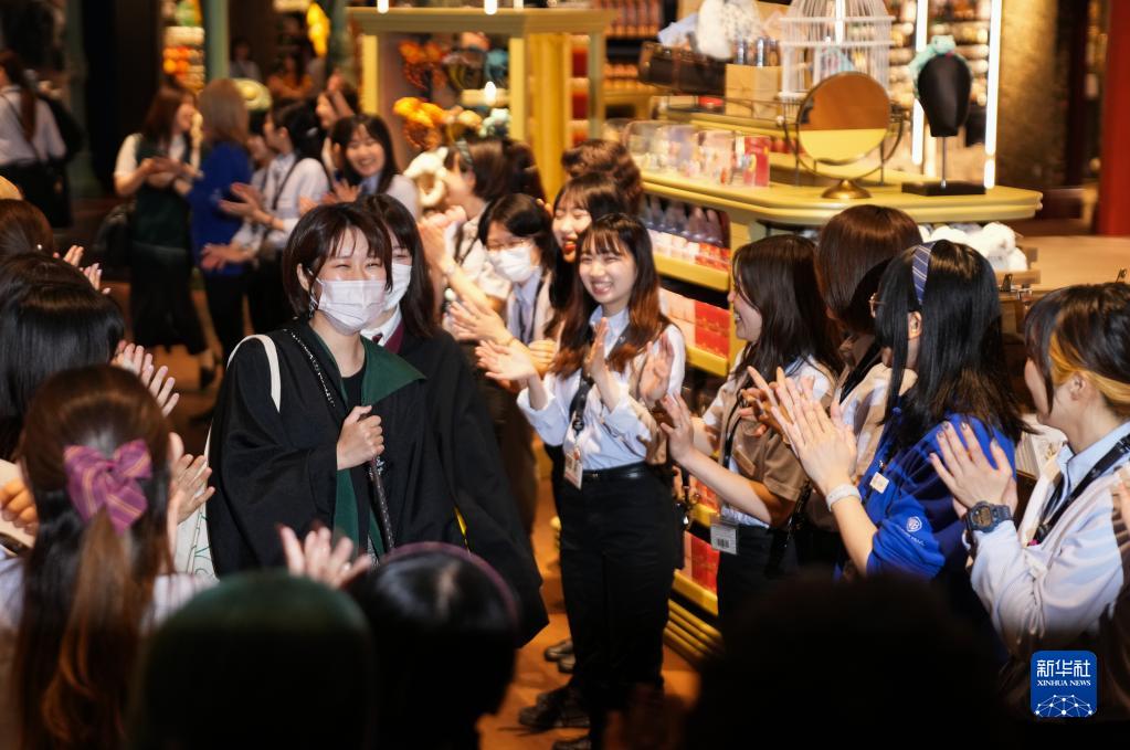 6月16日,在日本東京,哈利波特主題公園的工作人員歡迎游客。