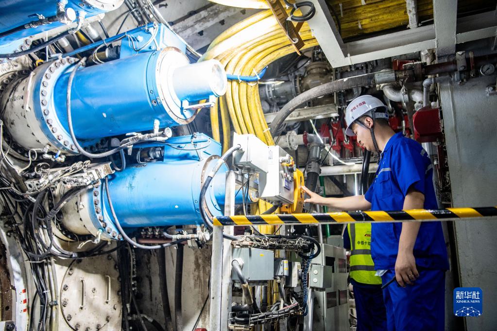 6月16日,工作人員在檢查“長(cháng)江號”盾構機運行情況。
