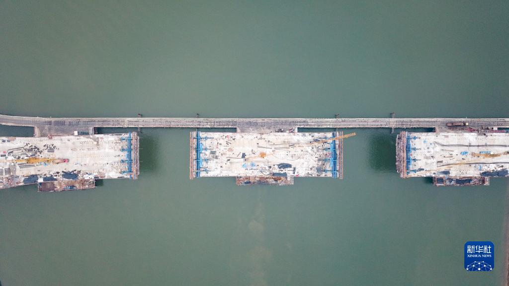 這是6月16日拍攝的香爐洲大橋項目建設現場(chǎng)(無(wú)人機照片)。