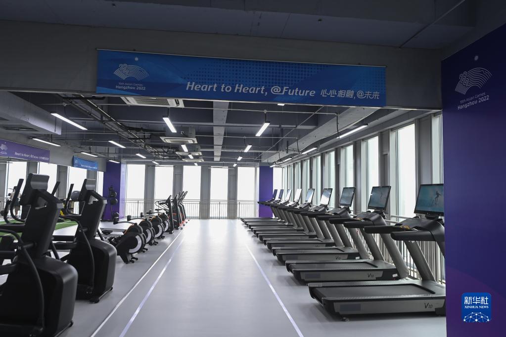 這是6月16日拍攝的杭州亞運村健身中心內景。健身中心設置有氧運動(dòng)區、爆發(fā)力訓練區、拉伸恢復區、綜合器械區及功能性訓練區,可容納約350名運動(dòng)員同時(shí)使用。