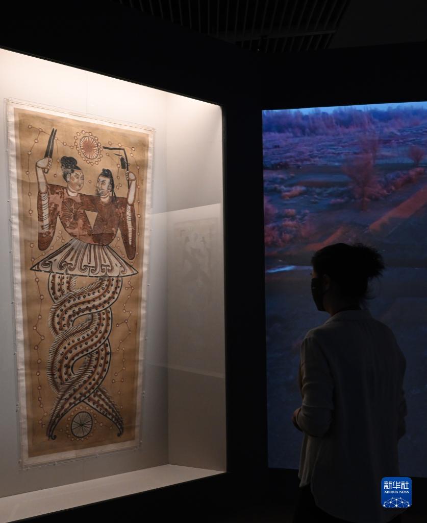 6月16日,觀(guān)眾參觀(guān)伏羲女?huà)z絹畫(huà)。