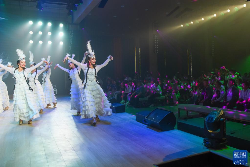 在新疆霍城縣惠遠古城,游客欣賞歌舞表演(6月16日攝)。