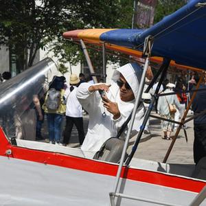 6月17日,在特種旅游節開(kāi)幕式上,游客在拍攝展出的飛機。
