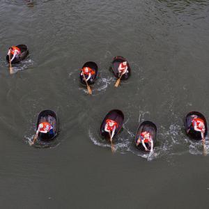 當日,浙江省湖州市吳興區東林鎮舉辦“慶端午 劃菱桶”趣味系列活動(dòng),來(lái)自各村的30多名選手一人一桶在泉益村的河塘里競相追逐,熱鬧非凡?;顒?dòng)現場(chǎng)還設有射五毒、做香囊、包粽子、做艾草花束等活動(dòng),讓百姓和游客在觀(guān)賞精彩比賽的同時(shí)了解特色端午習俗。